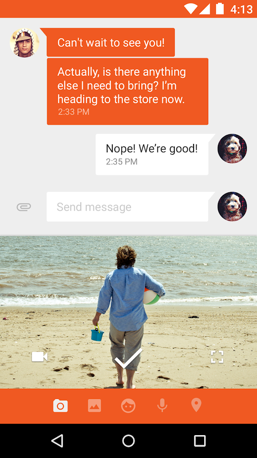 • Faster sharing: Select or take pictures and videos directly from the app and share easily. You can even send audio messages to your contacts.